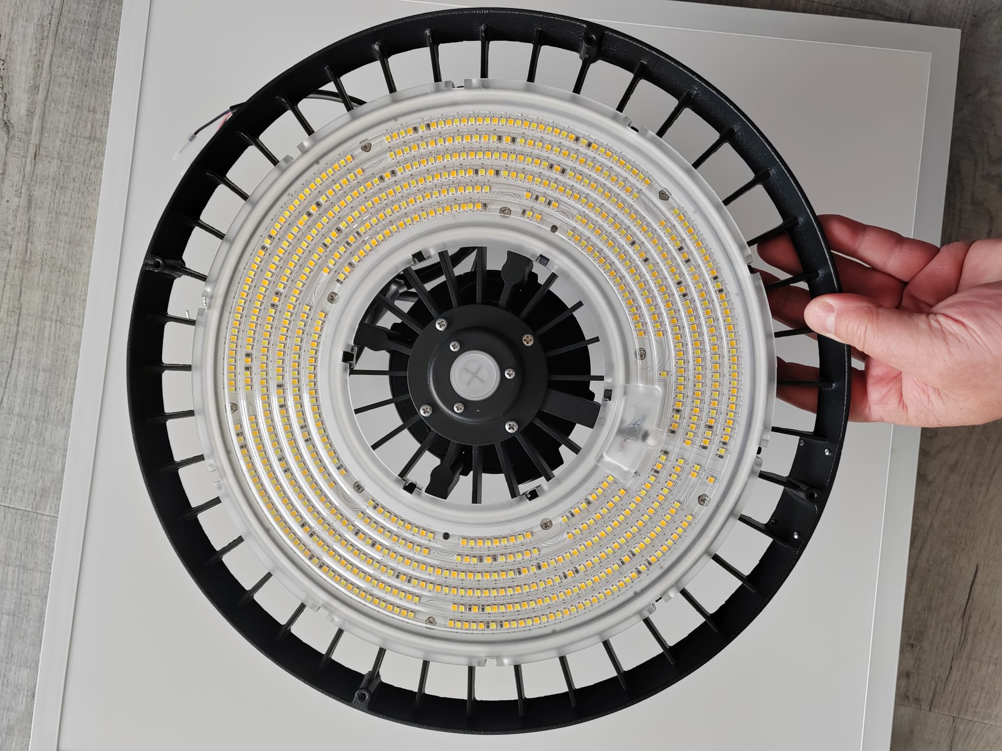 LED Halový reflektor WEGA s nastavením chromatičnosti 3000K-4000K-5000K, nastavení výkonu 100W-150W-200W, stmívatelný 1-10V, 5 let zárika