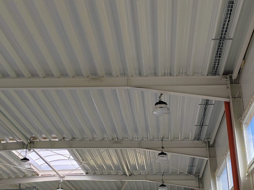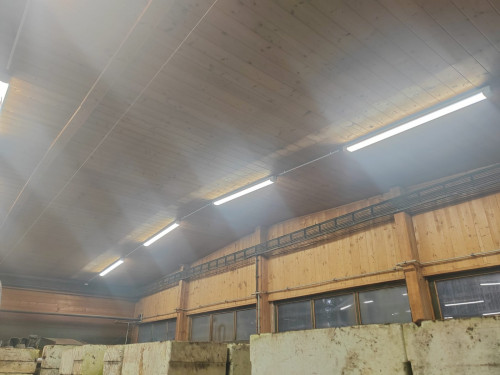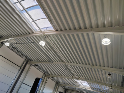 Dle požadavků klienta na kvalitu, výkon a odolnost, bylo, do prostor opravy techniky, doporučeno svítidlo s vysokou odolností TRI PROOF 60W, stmívatelné, 10.000lumenů. Členitá chodba byla osazena svítidlem LUCE Notlicht 25W vybavenou mikrovlným seznozorovým automatickým ovládáním se statusem nouzového záložného osvětlení.