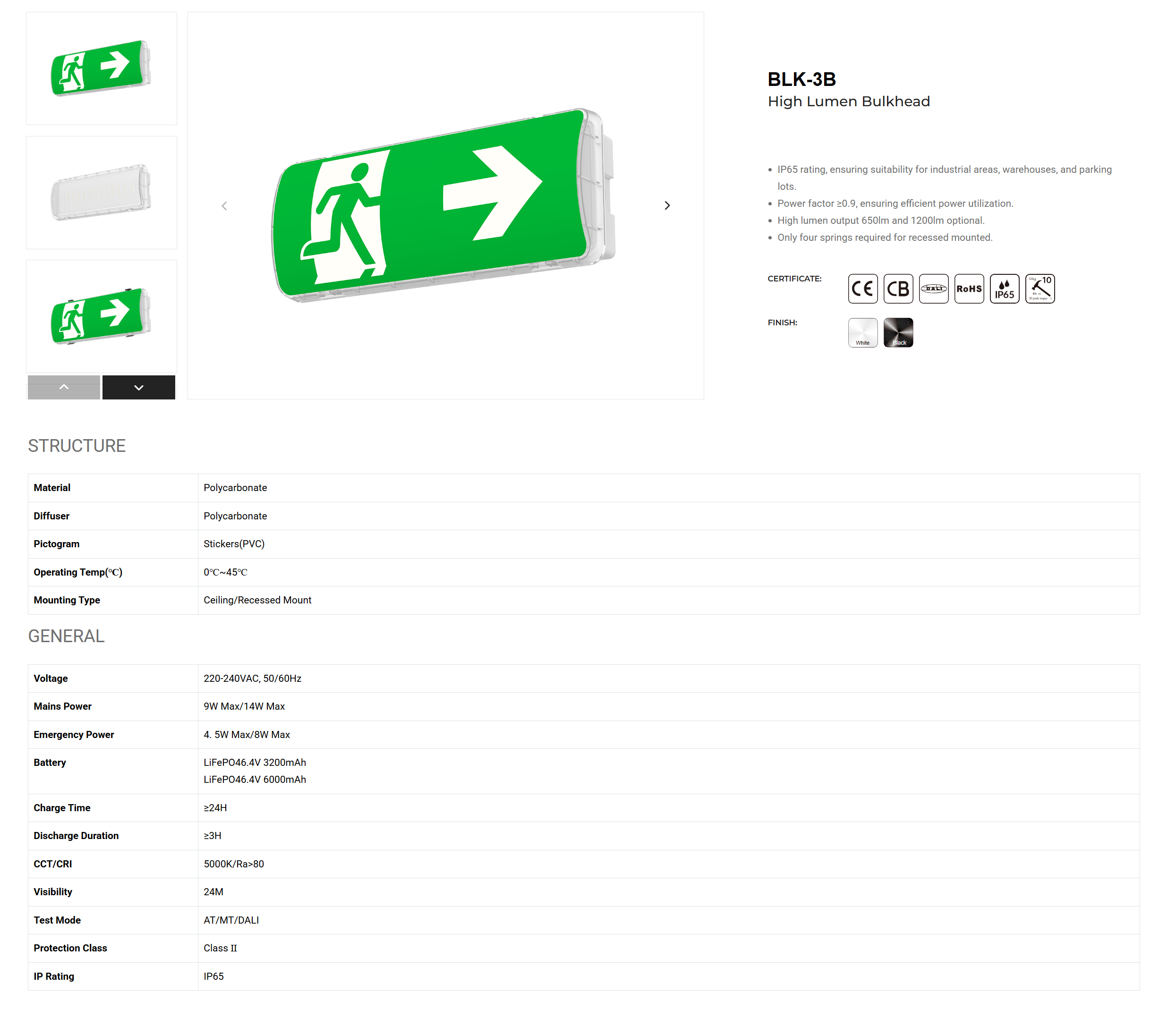 Nouzové únikové svítidlo BLK-3B, 8W/4,5W, 650lm, 3hod, 3200mAh