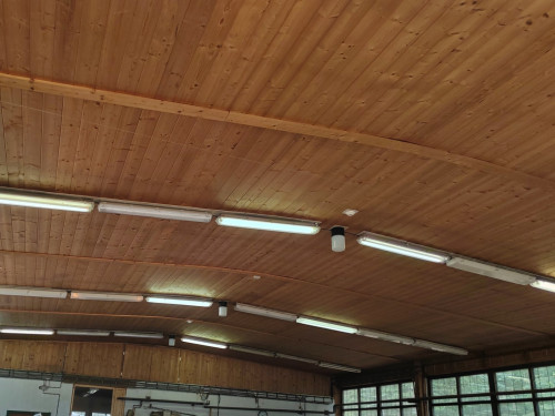Dle požadavků klienta na kvalitu, výkon a odolnost, bylo, do prostor opravy techniky, doporučeno svítidlo s vysokou odolností TRI PROOF 60W, stmívatelné, 10.000lumenů. Členitá chodba byla osazena svítidlem LUCE Notlicht 25W vybavenou mikrovlným seznozorovým automatickým ovládáním se statusem nouzového záložného osvětlení.